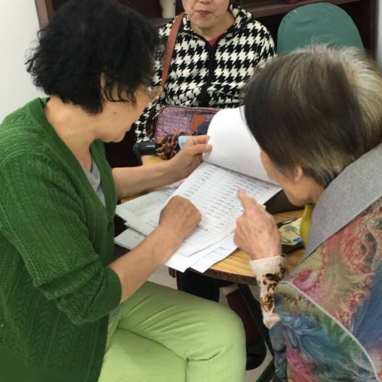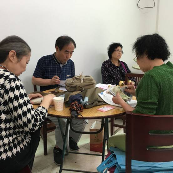退休党员认真学习文件,积极交纳党费