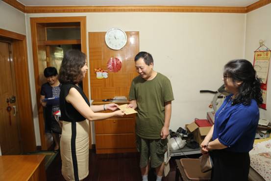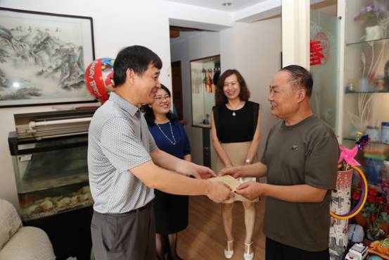 8月21日上午,受院党委委托,党委办公室主任兼行政后勤党总支书记辛玉岚,科研党总支书记刘建峰,医疗党总支副书记陈鸿芳和党委办公室人员一起到11名党员家中走访慰问,送去慰问金和院党委的关怀,祝愿他们身体健康、家庭幸福。