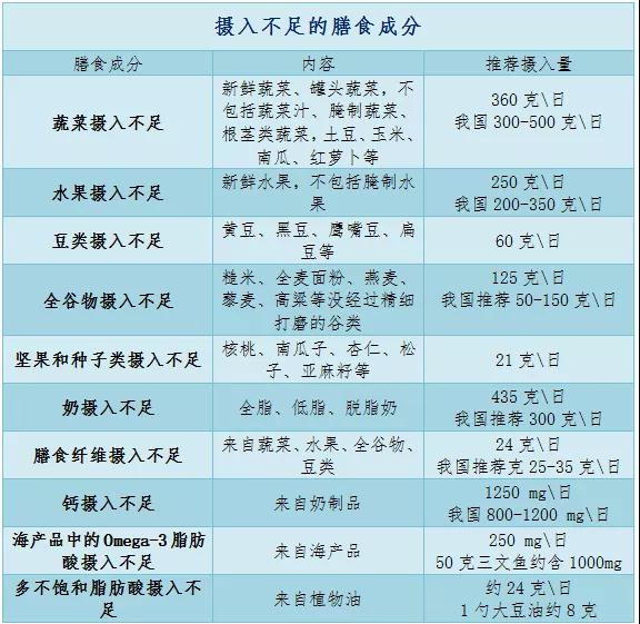 2019年4月初发表在国际顶尖医学期刊《柳叶刀》杂志上的一篇文章总结了过去27年间(1990-2017)大规模流行病学研究中对“吃”和疾病关系的发现。这篇文章涉及了全世界88%人口的膳食与疾病大数据结果。其中提到了膳食摄入不足和膳食摄入过多而导致健康问题的15种膳食成分。今天,陕西省中医医院营养科专家为您看看日常膳食有没有出现这些问题呢?