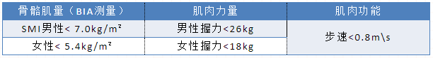 AWGS(亚洲少肌症工作组)通过骨骼肌量、肌肉力量、肌肉功能三个方面给予诊断,满足其中一条即可判断为少肌症。
