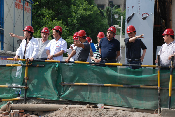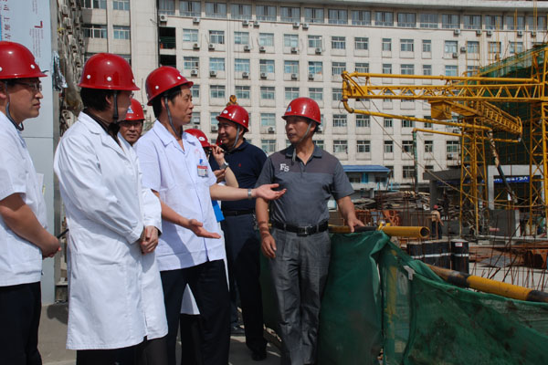 5月16日下午,院长、党委副书记刘勤社,党委书记、副院长呼燕,党委副书记李玉明带领基建办、院办、党办等部门再次视察了基建工作,重点强调抓质量,促进度。