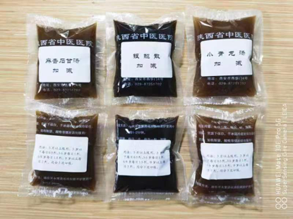此外,依据陕西省成人/儿童新冠病毒感染中医药治疗方案(试行第四版),为方便人民群众就医,保障人民群众生命健康,煎药中心连夜熬制不同类型抗疫汤剂(图4、图5),为感染新冠患者保驾护航(表1)。