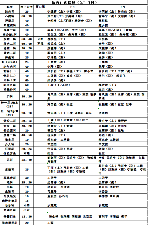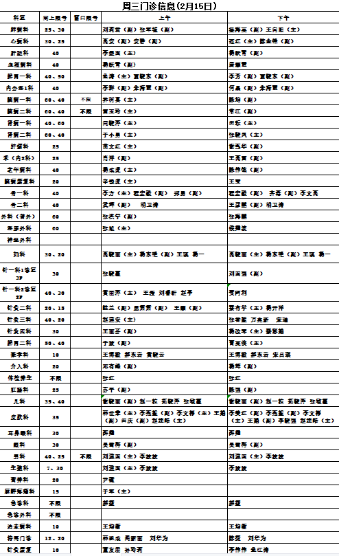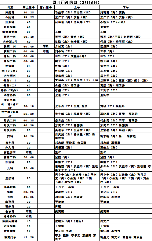 陕西省中医医院门诊信息(2月15、16、17日)