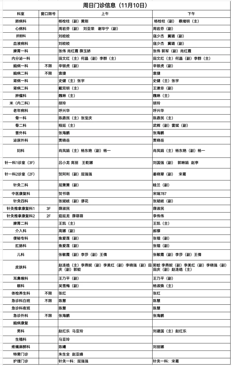 陕西省中医医院门诊信息(11月9、10、11、12日)