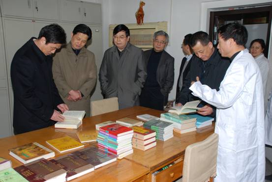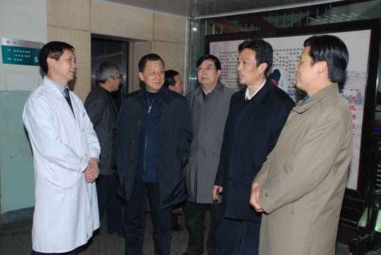 2月18日下午,省卫生厅党组书记、厅长戴征社、省卫生厅党组副书记、副厅长黄立勋、省卫生厅副厅长、省中医药管理局局长范兵、省中医药管理局副局长苏荣彪、省卫生厅办公室副主任唐宝云、秘书李杨一行冒雨来我院视察,院长、党委书记刘勤社、副院长魏少阳陪同视察。戴厅长一行先后视察了我院基建工地、门诊诊室、名中医工作室、皮肤科门诊及病房、肾病科病房及文献医史研究所,深入科研一线调查研究,与医疗科研人员深入交谈。视察结束后,召开了座谈会,院领导刘勤社、魏少阳、李玉明、于辉瑶参加会议,刘勤社院长作工作汇报,厅领导就我院当前工作分别与院领导交谈,提出指导性意见。