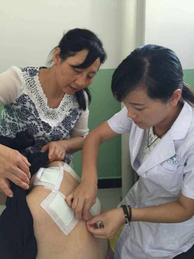 陕西省中医医院干部保健一科的医务人员正在给子长市民做穴位帖敷