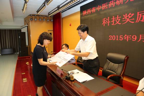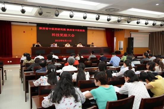 9月11日下午,省中医药研究院中医医院召开2014年度科技奖励大会。会议由许建秦副院长主持,科教处程小红处长宣读了《陕西省中医药研究院陕西省中医医院关于印发科学技术奖励办法的通知》,李玉明副书记宣读了获奖人员名单,院党委书记、院长刘勤社向李晔、苏同生等31名获奖人员代表颁发了奖金。各处室负责人和临床科研人员代表近200人参加了会议。