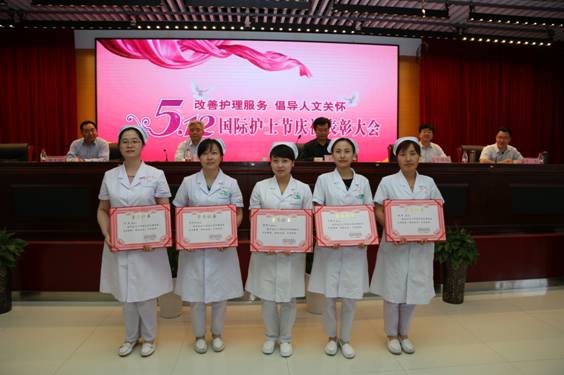 大会第二部分为庆祝表彰大会,由于辉瑶副院长主持。于辉瑶副院长首先代表院党政领导班子对常年战斗在护理工作一线的护士同志们致以诚挚的敬意和美好的祝愿。随后,李玉明副书记宣读陕西省卫生计生委关于表彰优质护理服务先进科室和个人的决定。许建秦副院长宣读陕西省中医医院关于表彰优质护理服务先进科室、优质护理服务之星、优秀护理教员的决定。于杰院长助理宣读陕西省中医医院关于表彰护理品管圈成果展示活动获奖科室的决定。大会向先进集体、先进个人及品管圈活动获奖科室颁发了奖状和荣誉证书。雷芳护士长及祁慧护士分别作为护士长代表和护士代表进行了发言。