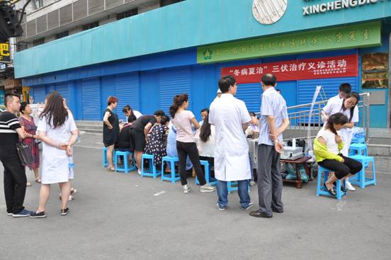 2016年7月13日,陕西省中医医院针灸一科黄丽萍主任、杨改琴主任医师、张斌奇副主任医师、刘国强主治医师前往新城区中医医院西一路社区卫生服务中心,开展 “冬病夏治”三伏治疗义诊活动,宣传讲解“冬病夏治”三伏治疗相关知识,使居民了解和正确认识“冬病夏治”三伏治疗,了解哪些疾病更适合三伏治疗。活动现场,咨询、测量血压及接受免费治疗的患者络绎不绝。
