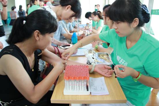 义诊现场,前来咨询和就诊的市民络绎不绝,专家们认真询问、检查,耐心解答他们的疑问,同时举办以“消除乙肝误区,正确认识乙肝,反对乙肝歧视”和“肝病防治知识”为主题的健康讲座,普及和宣传正确的乙肝防治知识,关爱乙肝病毒携带人群,用知识消除误解。现场为前来参与活动的患者免费进行乙肝表面抗原检测,发放乙肝和脂肪肝宣传资料,并进行健身气功八段锦现场教学表演及有奖互动问答,医生与观众互动问答肝病防治知识,幸运观众获得科室赠送的自产制剂活血止痛贴、化脂复肝贴等小礼物。”
