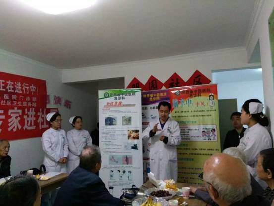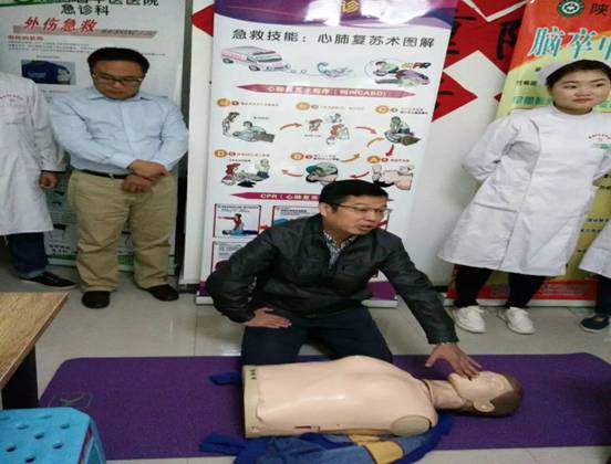 活动现场,来自我院急诊科屈小元主任、李晓倩护士长、骨伤二科程延副主任以及明园门诊部的医护人员10余名联合出诊,针对社区老年患者常见病、多发病的中医药知识预防与保健、家庭急救等问题进行了详细讲解。屈小元主任现场为居民演示徒手心肺复苏术、以海报的形式讲解心肌梗死自救及并发症的预防与治疗,脑卒中早期的常见症状及预防措施,程延副主任就骨外伤的家庭急救、日常损伤处理的注意事项进行了讲解,护士免费为老年人监测血压、血糖,并且根据不同体质的老人发放相关疾病的预防保健与健康知识宣教资料。