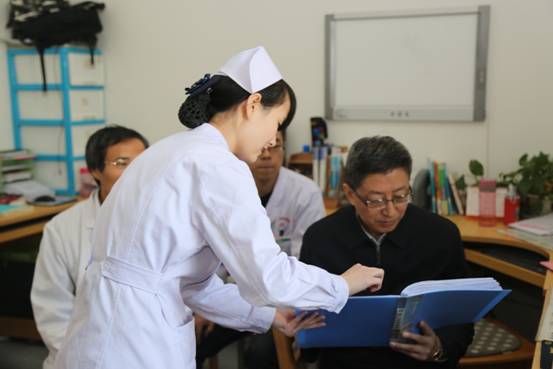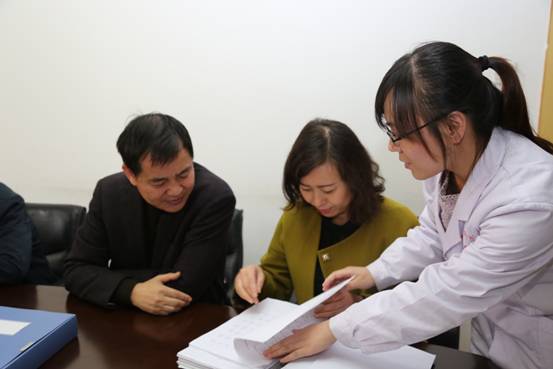 党委副书记、纪委书记刘小宾查阅针灸二病区党支部“两学一做”学习教育情况