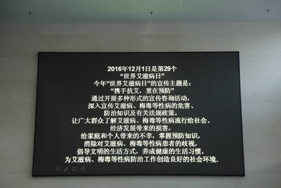 2016年12月1日是第29个“世界艾滋病日”,今年的活动主题是“携手抗艾,重在预防”。为了提高人们对艾滋病防治知识的知晓率,普及和宣传艾滋病的防治知识,我院在门诊大厅举行义诊宣教活动。