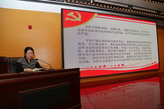 辛玉岚同志领学《关于新形势下党内政治生活的若干准则》和《中国共产党党内监督条例》。