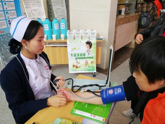参加义诊护士在测量血压