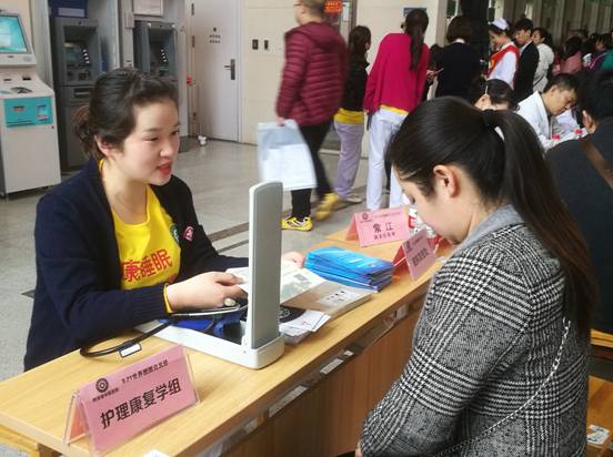 义诊护士在为群众测量血压