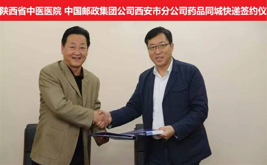3月30日,陕西省中医医院与中国邮政集团公司西安市分公司签订合作协议,药品同城快递服务正式开展。为方便患者取药,优化就诊流程,减少患者等待时间,省中医医院继开展网上挂号、网上支付后又联合中国邮政集团公司西安市分公司开展药品同城快递服务。