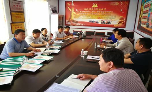 李玉明书记(右一)、刘力院长(右三)与村干部及驻村工作队讨论贫困户具体帮扶措施