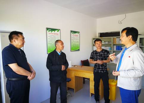 李玉明书记(左一)、刘力院长(右一)在新扩建的村卫生室