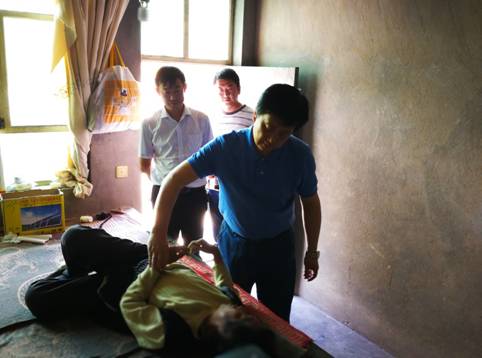 刘力院长为贫困户周爱山老人检查身体