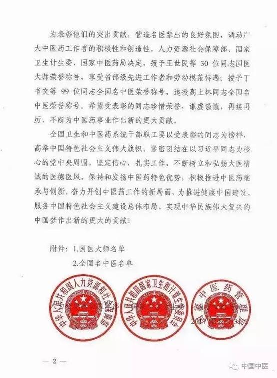 6月29日下午,人力资源和社会保障部、国家卫生计生委、国家中医药管理局在京西宾馆联合举办国医大师、全国名中医表彰大会,授予王世民等30位同志“国医大师”荣誉称号,丁书文等99位同志“全国名中医”荣誉称号。这是我国政府第三次在全国范围评选表彰国医大师,我院雷忠义主任医师被授予第三届国医大师荣誉称号,也是我省继张学文、郭诚杰之后,第三位荣膺国医大师称号的专家。
