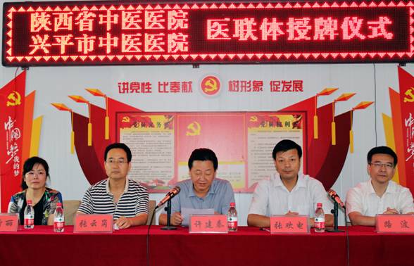 7月5日,陕西省中医医院“陕西省中医医疗联合体理事单位”、“陕西大针灸医联体成员单位”授牌仪式在兴平市中医医院举行。省中研院、省中医医院副院长许建秦为兴平市中医医院授牌并讲话,兴平市卫生计生局副局长张欢电主持授牌仪式,副局长张云岗致辞。省中医医院医疗管理处处长路波主任医师、针灸三科主任苏同生主任医师、脾胃病二科主任闻新丽主任医师以及兴平市中医医院领导、医务人员参加了授牌仪式。