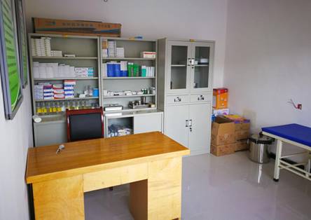 为了积极落实我院精准扶贫措施,实施精准扶贫,加快推进贫困村卫生室建设的要求,重点解决群众“小病不出村”看病就医问题。我院驻村扶贫工作队与卫生员郭春飞积极协商,在村干部的协调下,租赁了邻居的四间平板房,进行整体修缮。通过两个月的紧张施工,盘峰村新的卫生室修缮一新。新卫生室分50平米的观察室、20平米的治疗室,将一墙之隔的旧诊室改建成为一间20平米的药房。这样,盘峰村新的卫生室面积达90多平米,并且按照标准配置了诊断床、出诊箱、药品柜等基本设施及药品。设施配备远远超过村级规范卫生室的标准,村民看病就更加方便、舒适。