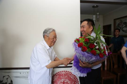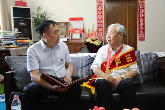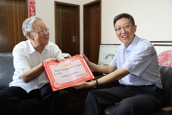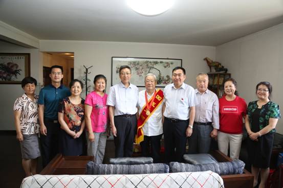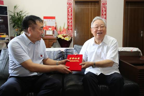 7月1日上午,党委书记李玉明,党委副书记、纪委书记刘小宾同党委办公室工作人员、南郊退休党支部支部委员一起,看望了优秀共产党员、国医大师雷忠义同志,并向其颁发了优秀共产党员荣誉证书。