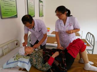 黄丽萍、苏同生主任医师为临近村群众会诊、治疗