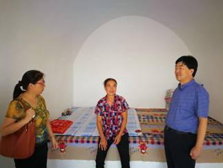 于辉瑶副院长带领大家到重点帮扶户吴伟亮家。吴伟亮家4孔窑已修缮一新,并新修建了羊圈,住房安全和环境得到根本改观,吴伟亮妻子领着大家参观修缮后明亮的窑洞,新建的羊圈,拉着大家在她家新窑前合影,开心地对于辉瑶副院长说“你们真好,你最帅”。