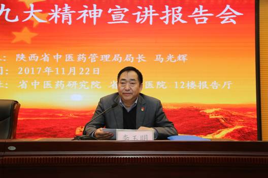 11月22日下午,省中医药管理局局长马光辉同志来到省中医药研究院省中医医院,为党员干部作党的十九大精神宣讲报告,省中医药研究院省中医医院党委书记李玉明同志主持报告会。省中医药研究院省中医医院副科以上干部,党总支、支部书记,医疗各科主任、护士长,科研各研究室主任,党员代表、入党积极分子代表及省中医药管理局党员干部160余人参加了宣讲报告会。