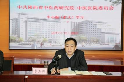 12月20日,省中研院省中医医院党委举行中心组(扩大)学习,组织学习了《中共陕西省卫生和计划生育委员会党组印发关于反馈对省中医医院(省中医药研究院)巡察意见的通知》,并结合反馈意见学习了习近平总书记就新华社近日刊发的《形式主义、官僚主义新表现值得警惕》一文作出的重要指示精神。会议由党委书记李玉明同志主持,院领导、全体处(副)级干部、各党总支、党支部书记60余人参加学习