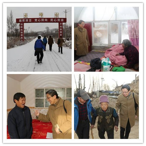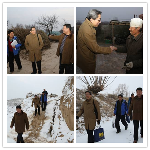 13日,横山下起了入冬来最大的一场雪,刘小宾同志一行顶风冒雪,在驻村工作人员的引领下,深入33户帮扶户家中,挨家挨户走访,与帮扶户拉家常,详细询问家庭人口、年收入等情况,了解帮扶户还存在什么困难,并为贫困户送上慰问金。每走访完一户,刘小宾同志都将每户最新扶贫信息发送到我院扶贫群,并逐一对应发送给每位结对帮扶责任人,方便帮扶人及时掌握结对扶贫户情况。走访中,了解到贫困户郭海兵小孩生病住院,15日晚,刘小宾同志一行专程前往横山县医院看望慰问,为郭海兵送去慰问金及礼品。