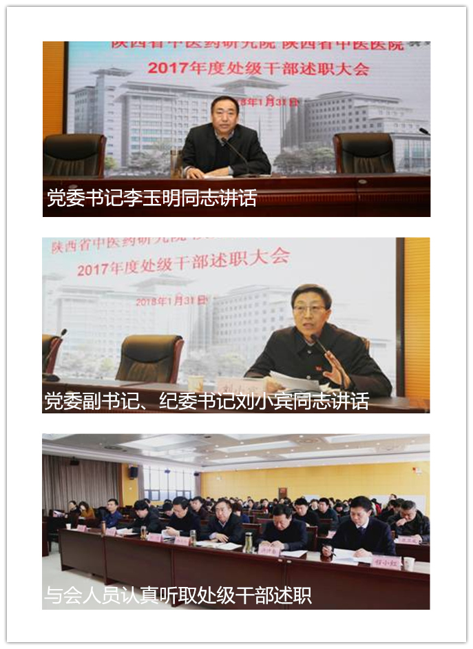 1月31日,省中医药研究院省中医医院召开2017年度处级干部述职考评大会。院领导、全体处(副)级干部、职工代表120余人参加会议。党委副书记刘小宾同志主持述职考评会。