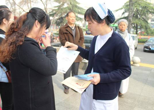 杨海侠护士长为群众发放健康宣教资料