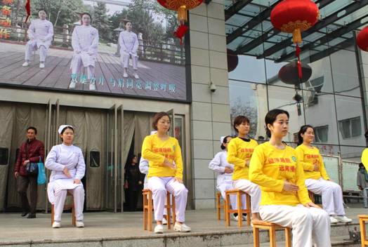 护理人员现场教授“安神操”