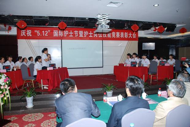 2013年5月8日下午,我院庆祝“5.12”国际护士节暨2013年护士岗位技能竞赛表彰大会隆重召开,省中医药管理局苏荣彪副局长出席会议并讲话,院长、党委书记刘勤社致辞。会议由副院长于辉瑶主持,院领导及我院干部职工200余人参加了庆祝表彰大会,观摩了护士技能竞赛总决赛。