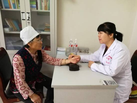 妇科主任高晓俐主任医师在为村民诊脉