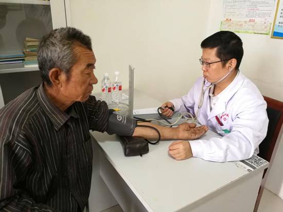 重症医学科主任屈小元主任医师为村民检查治疗
