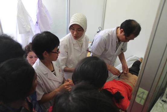 针灸三科苏同生主任医师为研修班成员示范针灸治疗