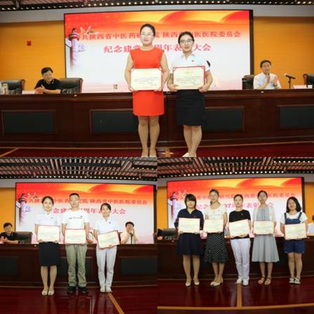 第三环节纪念建党97周年表彰大会在雄壮的国歌声中拉开序幕。党委委员、副院长于辉瑶宣读了《关于表彰2018年度先进基层党组织优秀共产党员和优秀党务工作者的决定》;党委委员、副院长许建秦宣读了《关于表彰学习习近平新时代中国特色社会主义思想和党的十九大精神征文优秀稿件的通报》;与会领导向先进基层党组织、优秀共产党员、优秀党务工作者进行颁奖,并向“学习习近平新时代中国中特色社会主义思想和党的十九大精神”征文优秀稿件作者颁发荣誉证书。