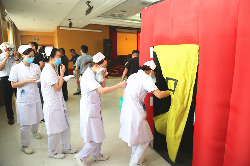 活动现场,总务保卫处组织人员对夏季防火常识、隐患排查、灭火及逃生等相关常识进行了宣讲,并进行“穿越火线”逃生帐篷模拟体验活动。李玉明书记、于辉瑶副院长、刘小宾副书记、程小红副院长、毕宇峰副院长莅临现场,做出活动指导并与医务人员一同进行了火场逃生体验。