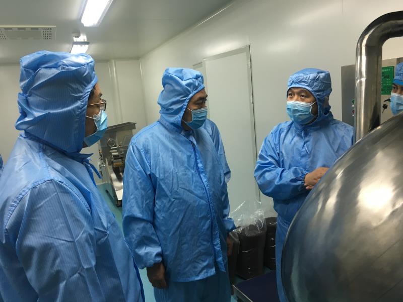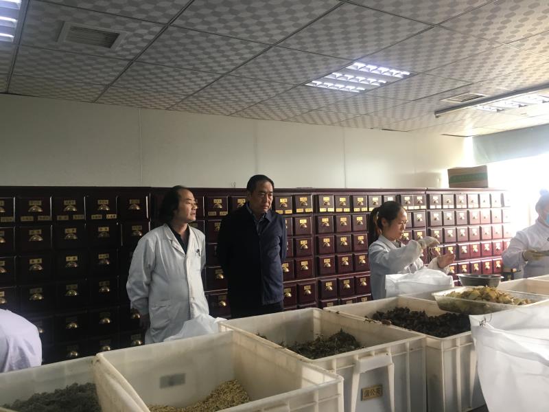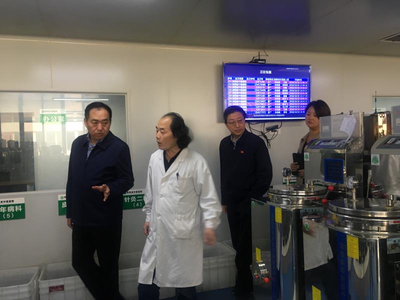 10月18日下午,党委书记李玉明、党委副书记、纪委书记刘小宾深入煎药中心、制剂科调研,院办、人事处、总务保卫处、财务处、药学部五个部门同志陪同调研。