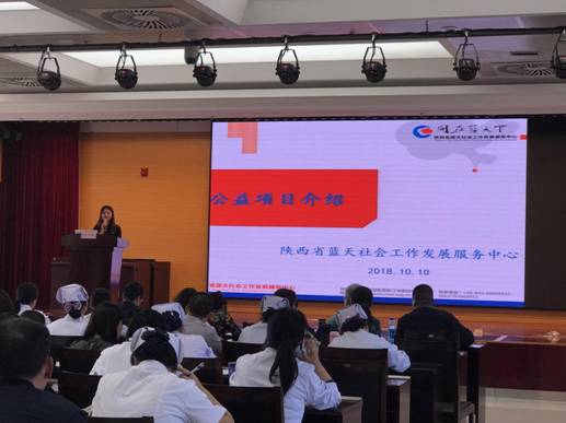 会上,陕西省蓝天社会工作发展服务中心项目主管闫弋雅对“救急难”平台项目和“孤老救助大行动”公益保险项目进行了详细地介绍,对公益项目存在的疑问进行了解答。培训结束后,对参会人员组织进行了考试。