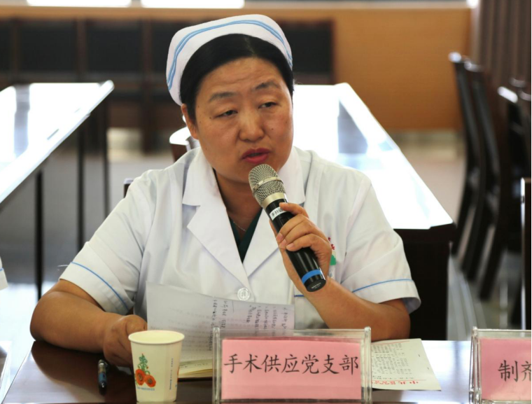 手术供应室党支部书记荣华发言