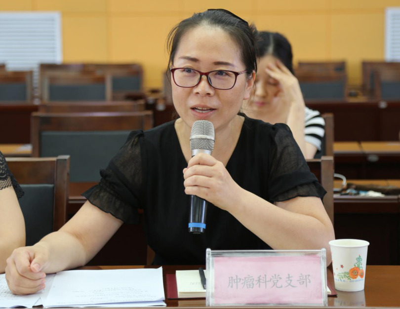 肿瘤科党支部书记侯赵英发言