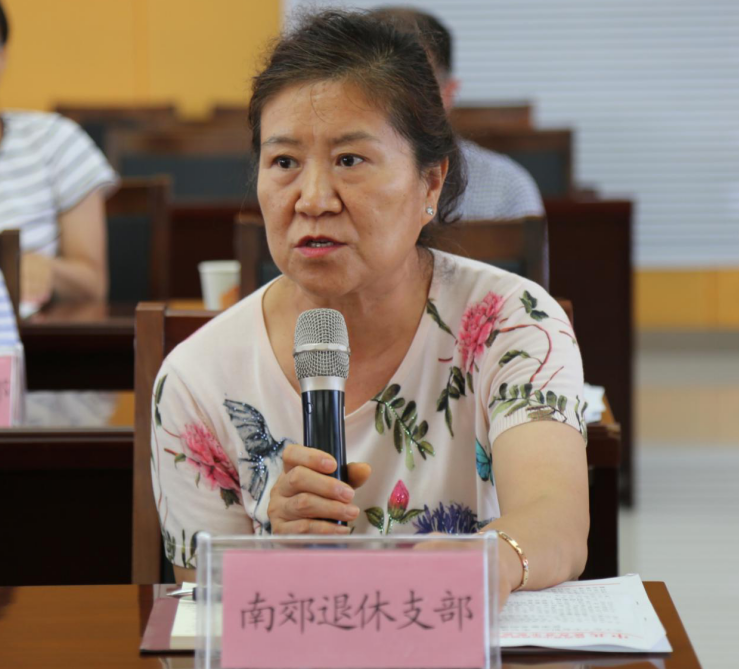 南郊家属院退休党支部书记张英发言