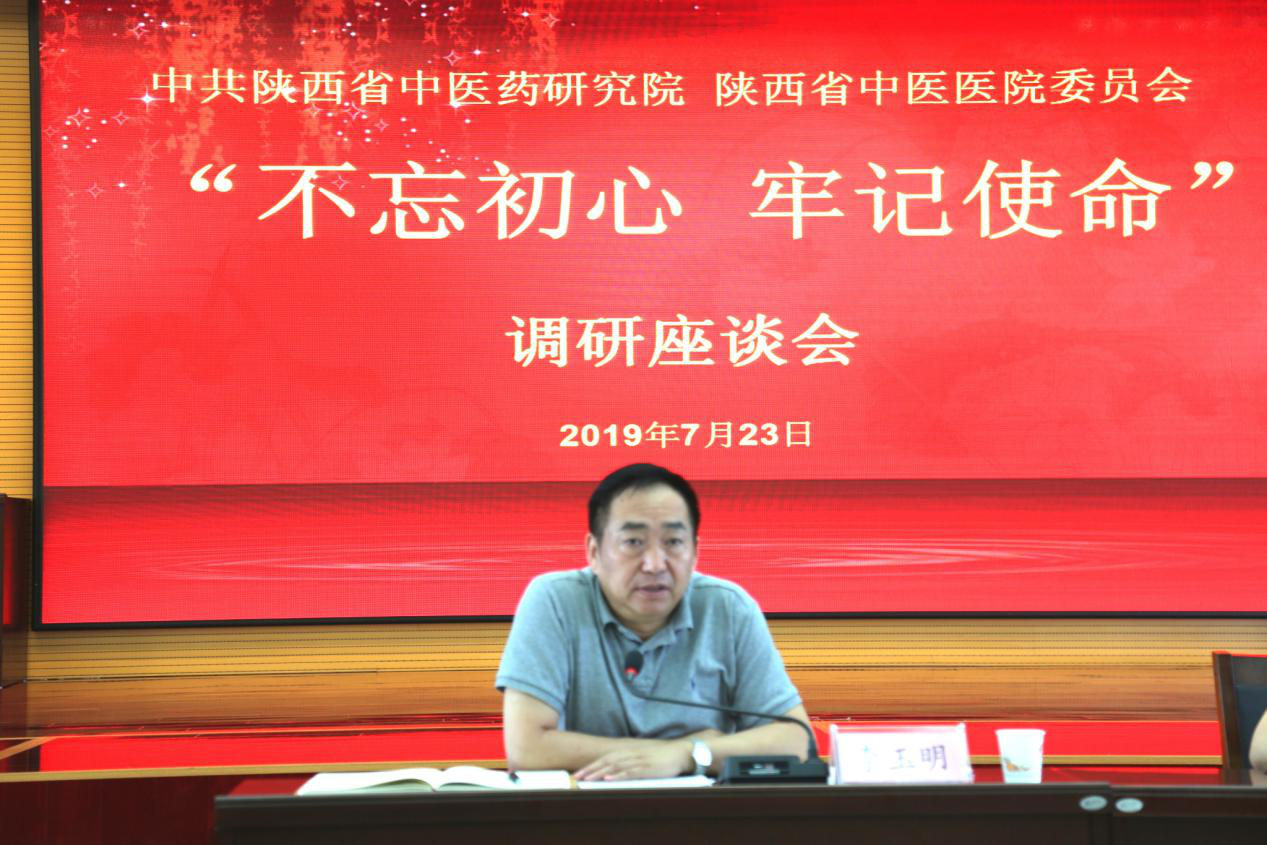 7月23日下午,省中医药研究院省中医医院党委召开“不忘初心、牢记使命”主题教育调研座谈会,党委书记李玉明出席会议并作调研座谈,党办主任、行政后勤党总支书记辛玉岚主持,全院各党总支、党支部书记40余人参加了会议。