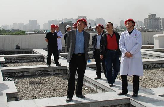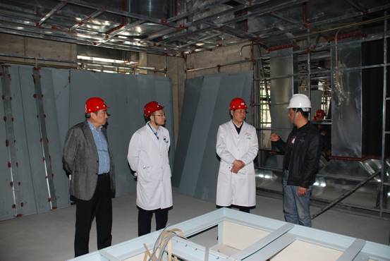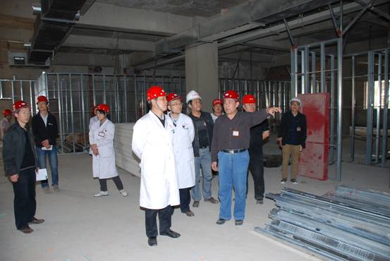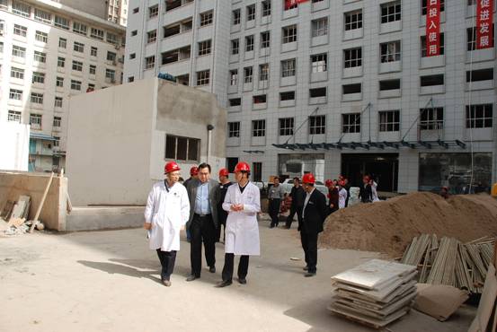 2014年4月29日下午,院长、党委书记刘勤社、党委副书记李玉明等院领导带领院办、基建办、总务处、财务处、设备办、药剂科、信息科等部门负责同志再次深入住院综合楼建设工地检查指导工作。刘院长一行先后深入各个楼层检查,重点询问工程进度、察看工程质量、了解存在问题,采用现场办公的方式研究基建工作,解决存在问题。随后在工地召开了座谈会,听取华山建设项目部、院基建办和各部门的工作汇报,刘勤社院长和李玉明副书记分别作了重要讲话,强调: