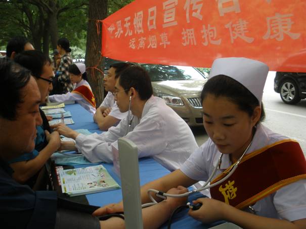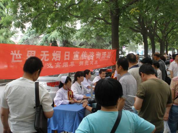 5月30日上午,我院在门诊楼前举办了以“远离烟草,呵护健康”为主题的“世界无烟日”控烟知识宣传咨询活动。